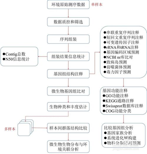 宏基因组 ( Metagenome)(也称微生物环境基因组Microbial Environmental Genome, 或元基因组)是由 Handelsman 等 1998 年提出的新名词, 其定义为“the genomes of the total microbiota found in nature” , 即环境中全部微小生物遗传物质的总和。它包含了可培养的和未可培养的微生物的基因,目前主要指环境样品中的细菌和真菌的基因组总和。宏基因组学(或元基因组学,metagenomics)是一种以环境样品中的微生物群体基因组为研究对象,以功能基因筛选和/或测序分析为研究手段,以微生物多样性、种群结构、进化关系、功能活性、相互协作关系及与环境之间的关系为研究目的的新的微生物研究方法。一般包括从环境样品中提取基因组DNA, 进行高通量测序分析,或克隆DNA到合适的载体,导入宿主菌体,筛选目的转化子等工作。